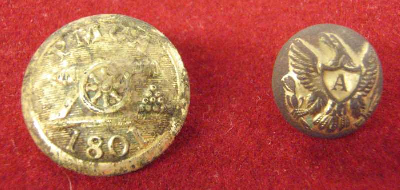 Mike Furmage located this Union Eagle A (Artillery) button, and a rare Rhode Island Providence Marine Corps of Artillery button in Maryland in July 2016 with his trusty White's DFX.