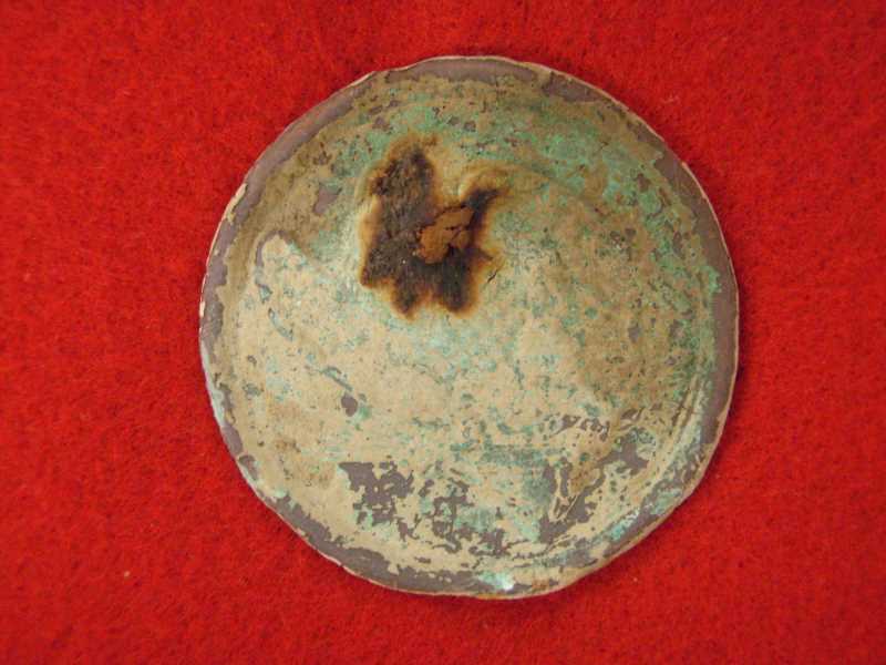 Brad Trostle found this beautiful 1-3/8" diameter great coat button with gilt, a Type I Williams Cleaner bullet, a pewter button, and an 1820 large cent in the first 3 days of July, 2015, all on a farm near Gettysburg.