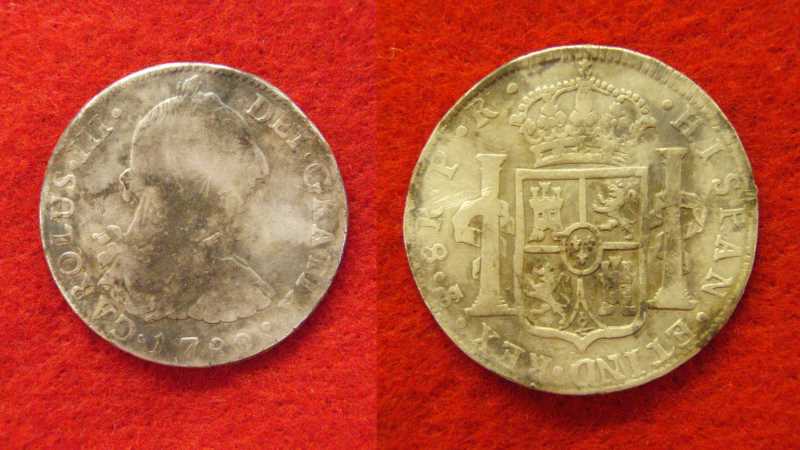 On June 24, 2017, Steve Frey dug this 1780 8 Reale coin in a field east of Gettysburg, using his Garrett Ace 250. A scarce great find!