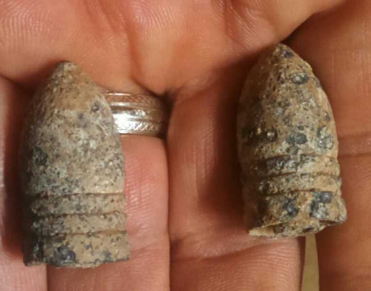 Tim Bosler dug these explosive bullets in the Gettysburg area. The scarce bullets were used in only two major battles, Chancellorsville and Gettysburg. Both the Union and the Confederates agreed that they were too unhumane, and agreed not to use them.